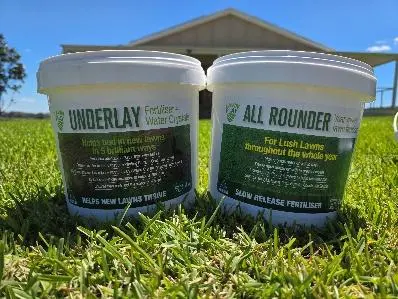 Water crystals to help drought proof and fertiliser for after your first mow. Used in the establishment period.